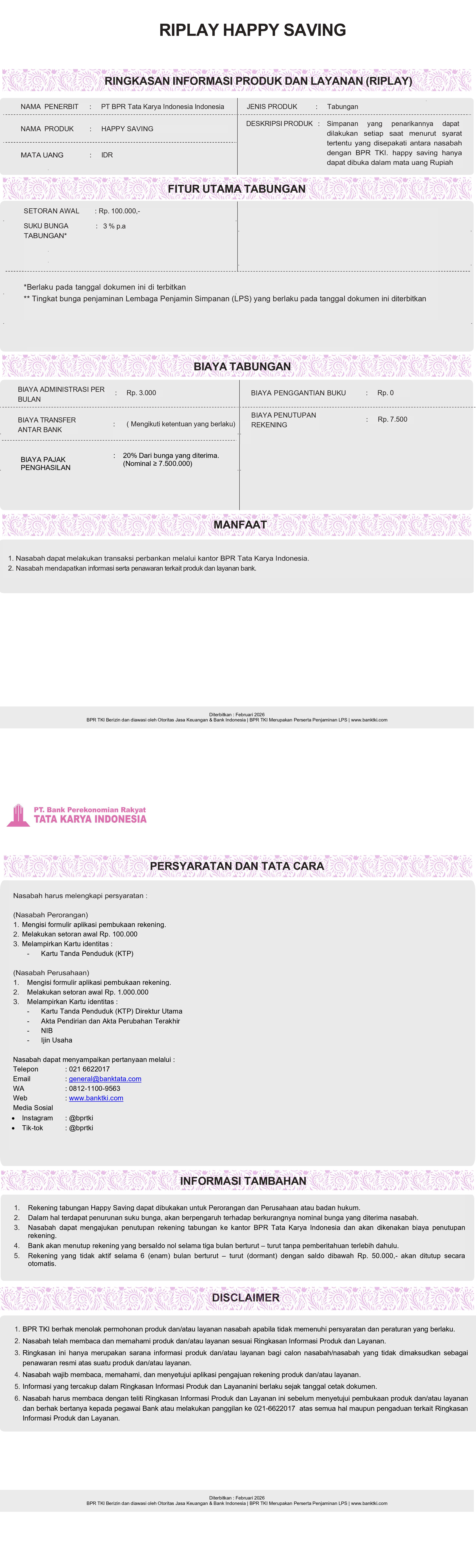 SUMMARY OF SAVINGS SERVICE PRODUCT INFORMATION